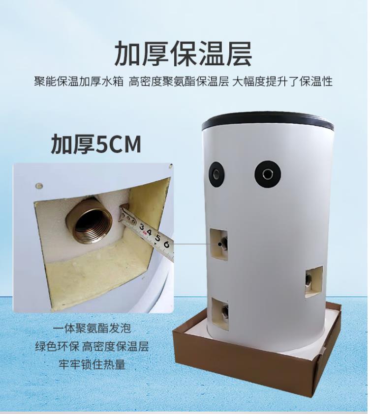 4、水箱采用高密度聚氨酯保温材料,用德国高压发泡技术一次成型,保温效果好。