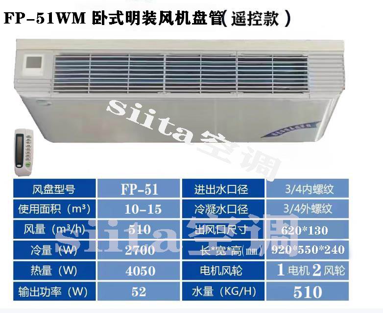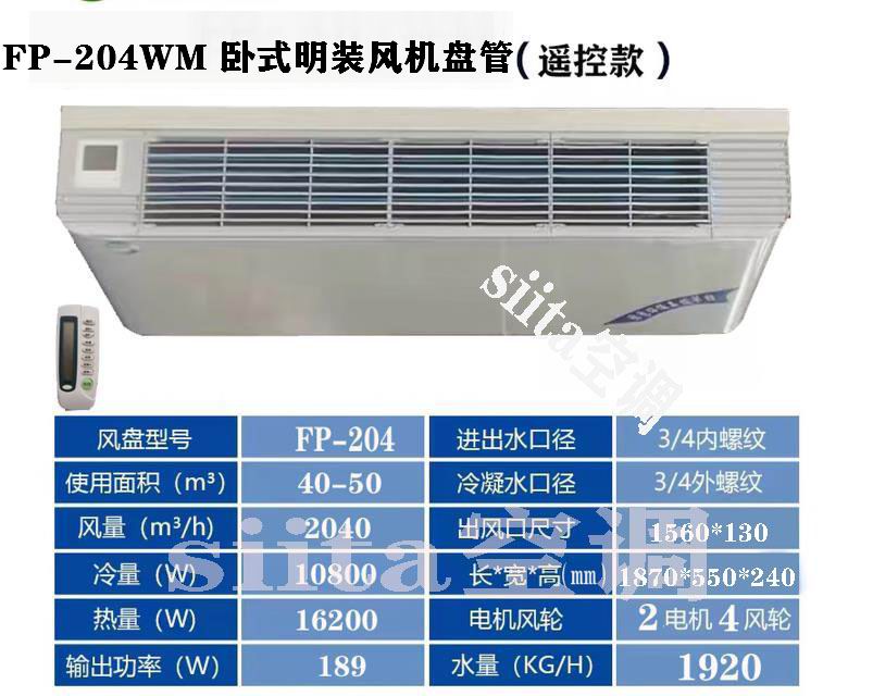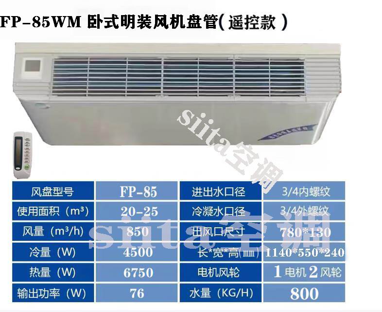 卧式明装风机盘管遥控款型号参数选型