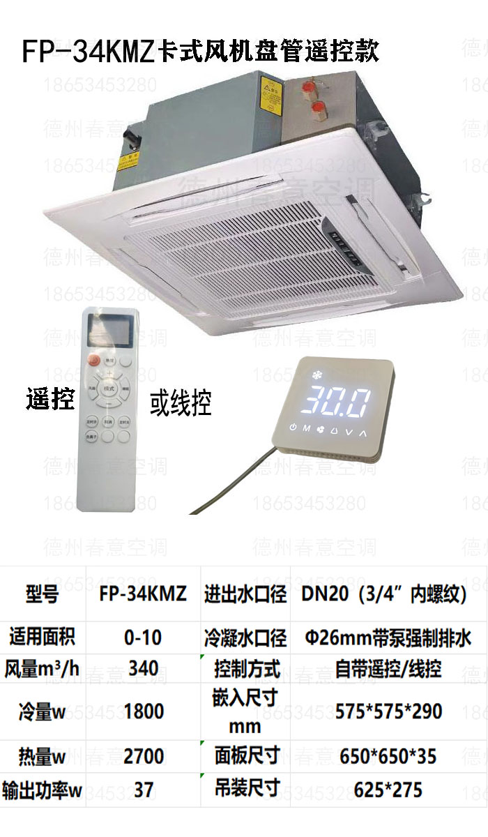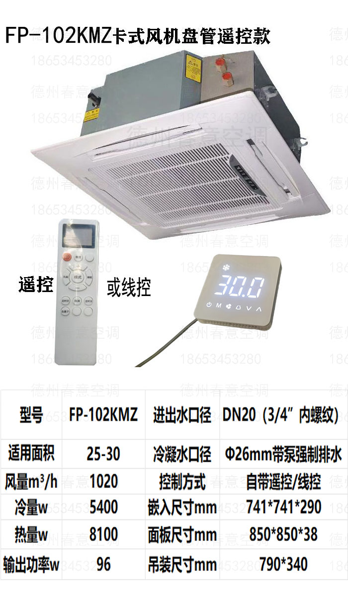 豪华型特点德州春意siita卡式四面出风豪华型遥控款卡式风机盘管,嵌入式风机盘管型号参数、选型表